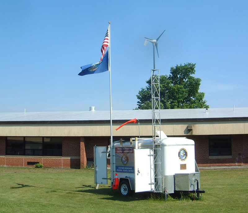 Formerly the Solar Classroom trailer was operating at the Undermountain School of the Southern Berkshire Regional School District, in Sheffield MA. It's geographical coordinates were: 42.1064 N and -73.3756 W as shown on the map below: