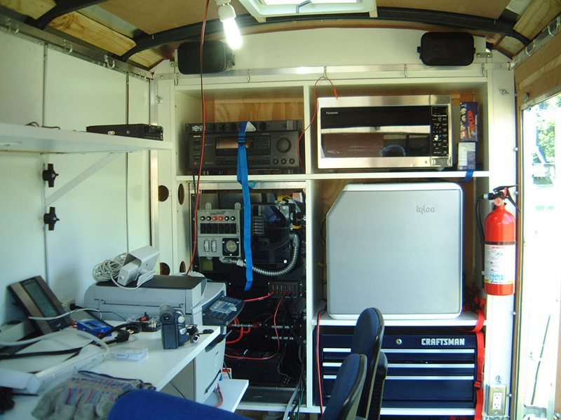 When fully operational, the trailer will have a full complement of computers, GPS, two way radios, satellite Internet services and community WiFi. The trailer is fully self-sufficient and can operate off the grid indefinitely.